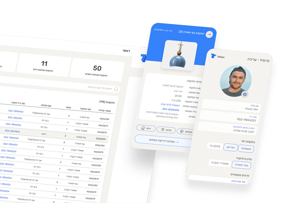 אפליקציית TIK TECH מאפשרת לבעלי חנויות (אונליין ופיזיות) לשדרג את חווית השירות ולייצר בידול משמעותי אל מול המתחרים! האפליקציה מתממשקת למערכת SAAS ומתאמת את התקנת המוצר כבר ליום האספקה, וזאת באמצעות סנכרון תהליך האספקה וההתקנה כבר במעמד הרכישה.